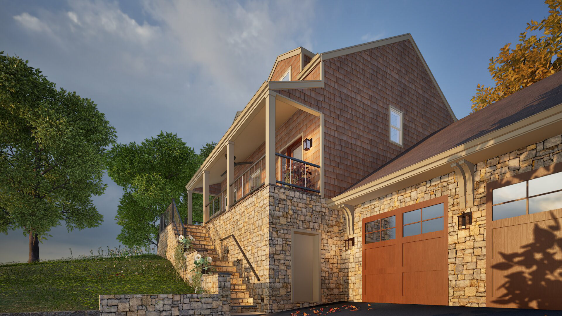 Located in the historic Allenwood neighborhood of Wall Twp. atop the crest of a hill, the architectural form is inspired by the Shaker style of the original home, highlighting simplicity by limiting embellishment. The design connects with nature by nestling the structure into the steeply sloped topography of the site, exhibiting natural materials and ample views of the sunrise and sunset through an array of windows.